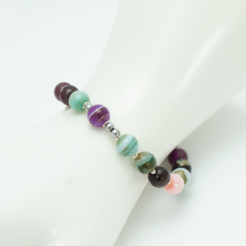 • Naturalne Piękno: Sercem bransoletki jest fasetowany agat. Dzięki naturalnemu pochodzeniu kamieni, każdy koralik posiada unikalny układ prążków i odcieni – to sprawia, że Twoja bransoletka będzie jedyna w swoim rodzaju.