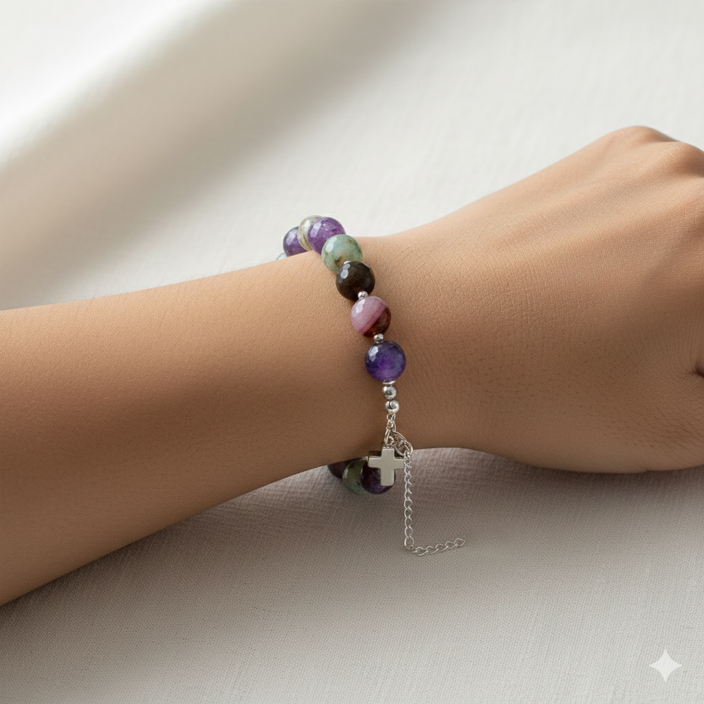 • Trwałość i Komfort: Różaniec został nawleczony na niezwykle mocną, japońską linkę stalową, co gwarantuje odporność na codzienne użytkowanie.
