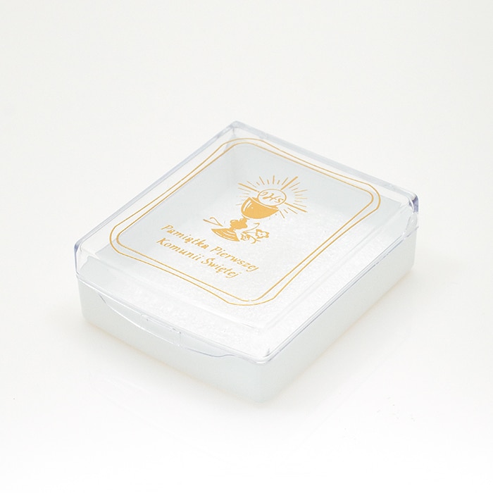 Różaniec jest zapakowany w pudełeczko i stanowi pomysł na piękny prezent na chrzest, komunię, bierzmowanie, itd.